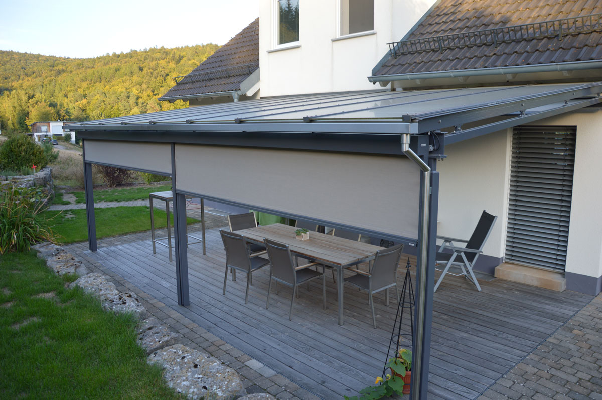 Terrassendach mit Unterglasmarkise und Zip Markise